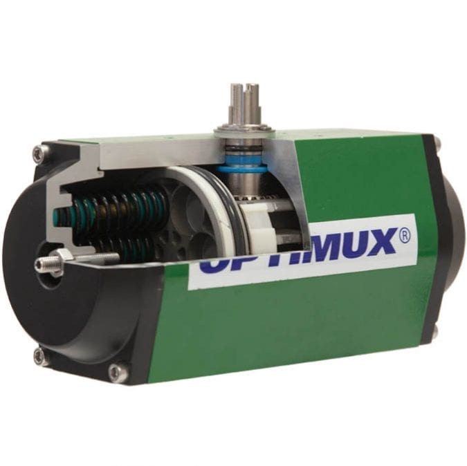 The OpRPA is enclosed in a precision-extruded anodized aluminum body and has a one-piece nitride-coated pinion gear. They are designed for 100-degree travel with clockwise and counterclockwise travel adjustment for open and closed positions. Moreover, the OpRPA is convertible to a double acting or a spring return simply by removing or adding springs.